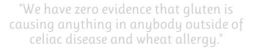我们不能说面筋导致在谁自己定义为具有nonceliac对麸质过敏的人的症状。该术语是用词不当;它应该被抛弃。这些事件是自报。没有测试显示这些患者的异常。我们应该停止谈论的事情,我们甚至不能确定。我们不知道是什么原因造成这一点。我们需要做适当的实验,以确定什么是错的这些人。